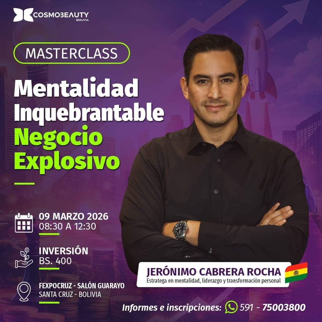 En CosmoBeauty Bolivia, ayudamos a los profesionales y equipos de belleza a construir el negocio de sus sueños, conectándolos con las últimas tendencias, oportunidades y expertos de la industria. Más que una feria, somos un espacio único de campeonatos, desfiles y demostraciones en estética, peluquería, spa, fitness y wellness. Aquí, cada edición es una plataforma de crecimiento donde el aprendizaje y la innovación transforman aspiraciones en éxitos. Ya seas un estilista o una marca emergente, en CosmoBeauty Bolivia encontrarás el impulso para destacar en un mercado en constante evolución.