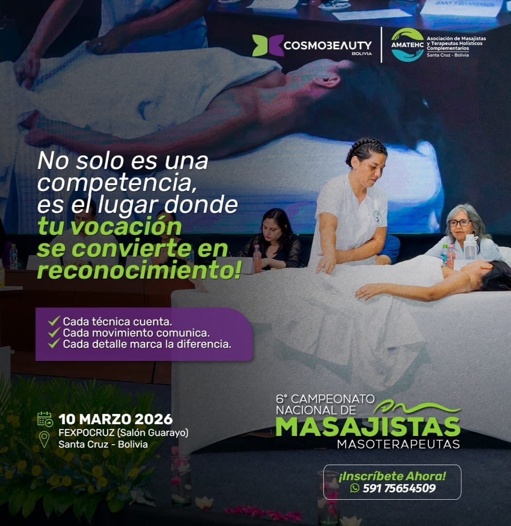 En CosmoBeauty Bolivia tenemos actividades diseñadas específicamente para ti. Descubre nuestro campeonato de masajes y participa en el congreso especializado donde podrás aprender de los mejores profesionales del rubro. ¡No te pierdas esta gran oportunidad y entérate de más detalles!